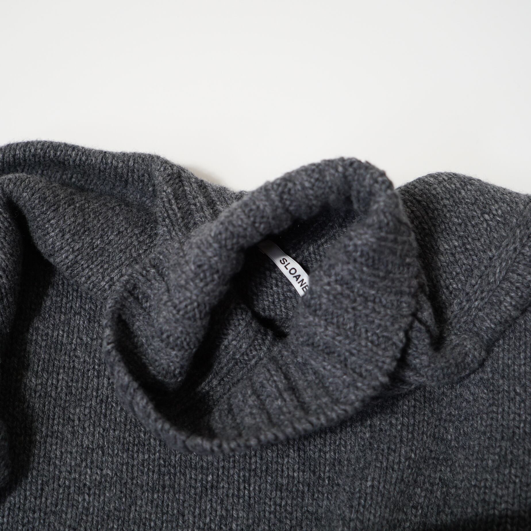 SLOANEの純血種の羊毛からしか採取出来ないソフトな風合いのスーパージーロンラムズウールに、カシミヤをブレンドしたオリジナル糸を使用したニット。太目の糸を使用した3Gニット。